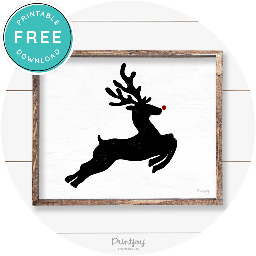Flying Reindeer Silhouette Christmas Farmhouse Wall Art Free Printable